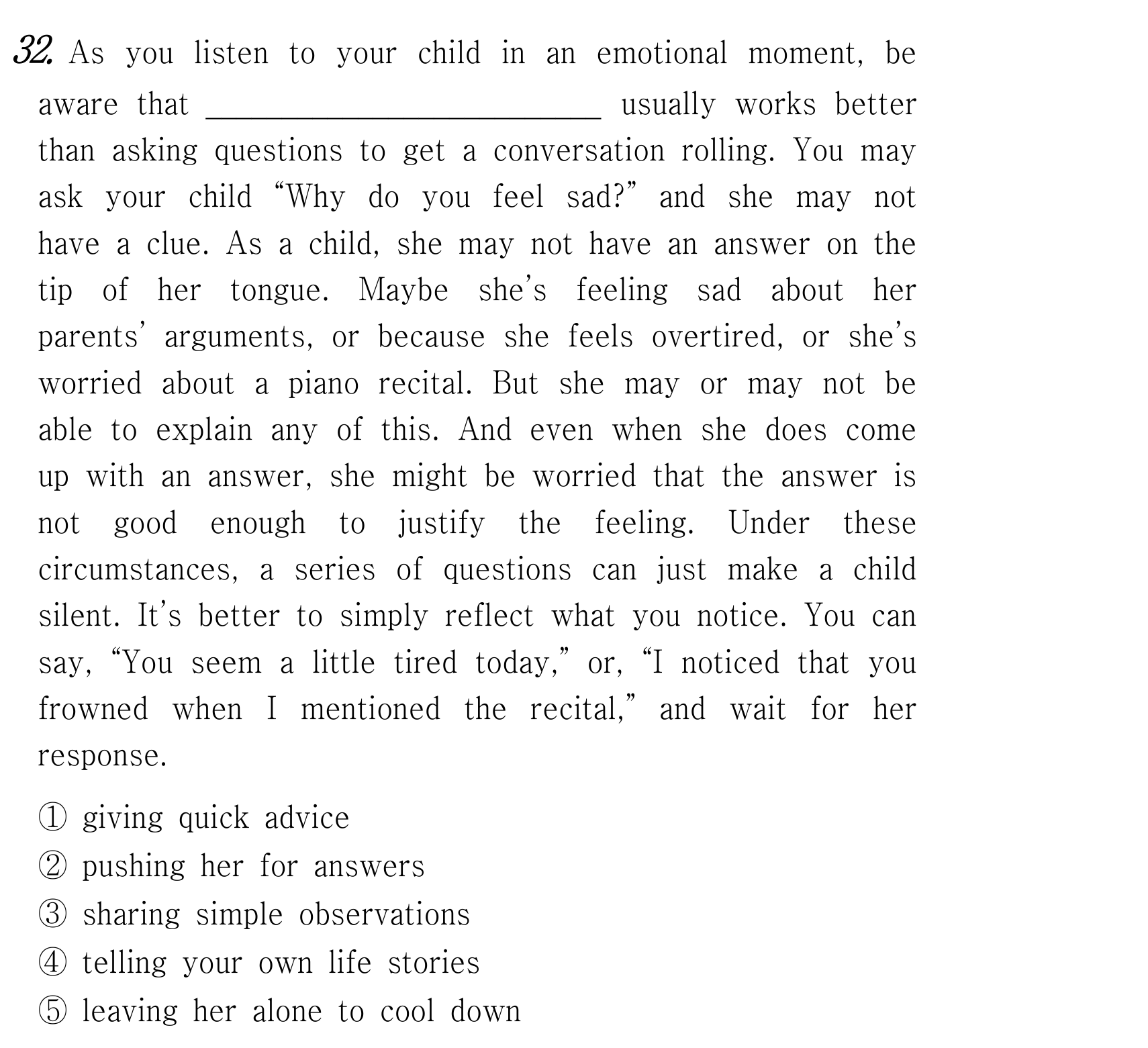 As you listen to your child in an emotional moment, be — 2025년 3월 고1 32번 해석/풀이