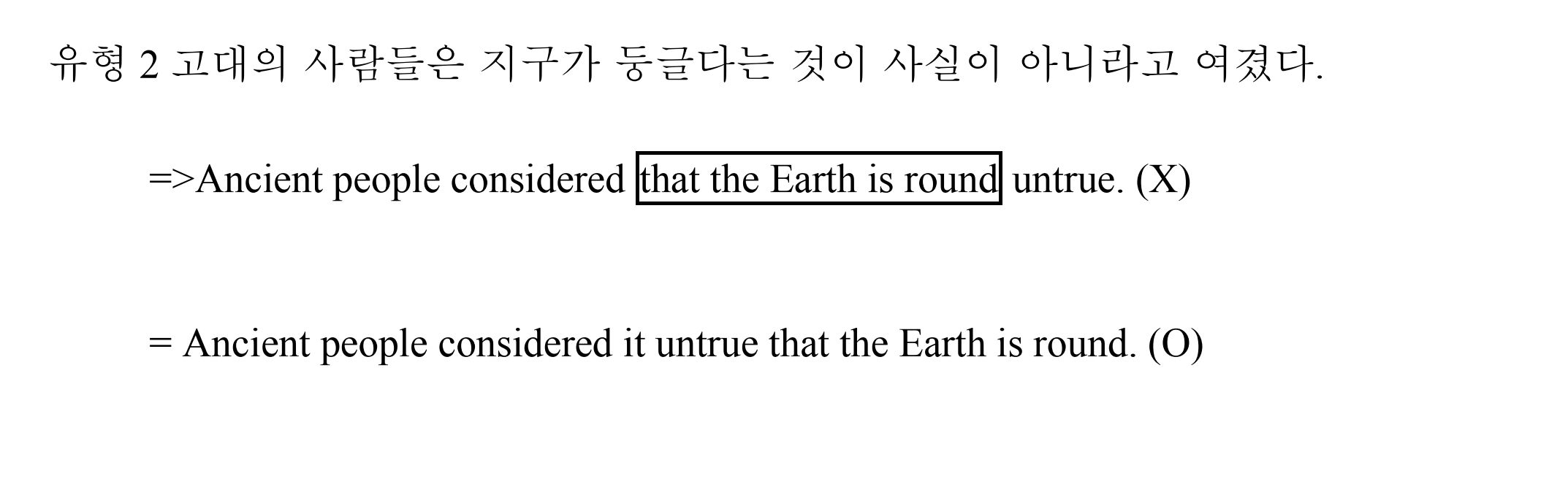 자 이제 공식을 유도해서 이해한 것을 마치셨다면 다음은 연습문제 아래 해석을 한번 적어 보세요. 가목적어는 이해보다는 그냥 구문이고 습관입니다. 외국에서 온 좀 하는 아이들은 저기에 it 이 안들어가면 틀린다는 것을 문법을 설명안해도 알고 있는 경우가 많습니다. (제가 가르치면서 많은 해외파들을 경험해보고 느낀점이니 주관적임)